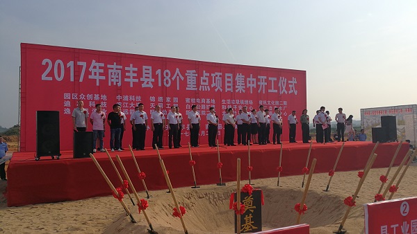 為進一步營造濃厚的項目建設(shè)氛圍,推動縣域經(jīng)濟趕超發(fā)展,2017年8月20日上午8:28,南豐縣18個重點項目集中開工儀式在黃金工業(yè)園區(qū)舉行。撫州市副市長徐國義出席儀式并講話;縣委書記吳自勝宣布開工并講話;縣委副書記、縣長樂啟文致辭。隨后,南豐曠遠能源有限公司、城區(qū)飲水工程和園區(qū)眾創(chuàng)基地的代表分別代表企業(yè)發(fā)言。