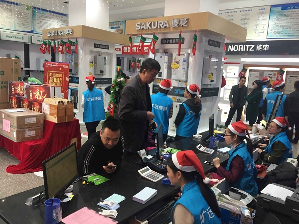 為持續(xù)性開展曠遠(yuǎn)能源燃?xì)饩咪N售宣傳工作,以回饋廣大燃?xì)庥脩簦?017年12月23日,曠遠(yuǎn)能源客服部在曠遠(yuǎn)營業(yè)廳舉辦了“雙蛋大狂歡,年底無底線”團(tuán)購會(huì)活動(dòng),現(xiàn)場共吸引百余名業(yè)主前來參加選購。